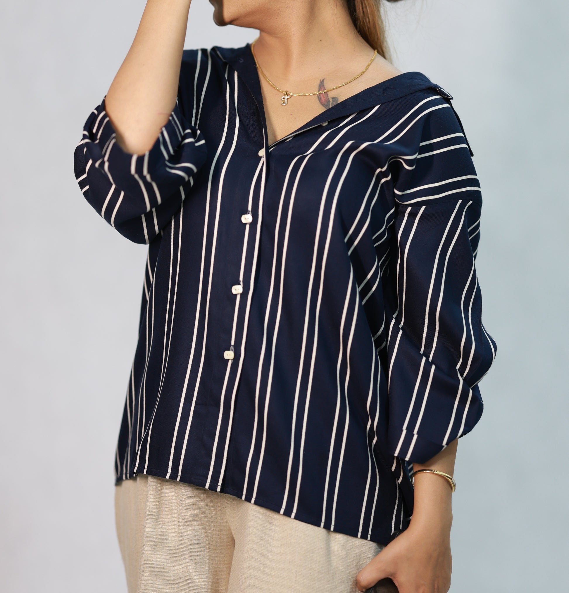 Designed for effortless comfort and everyday style, this loose-fit shirt is crafted from soft rayon twill and features a timeless striped pattern. The drop-shoulder design enhances its relaxed silhouette, while 3/4 sleeves add a touch of casual sophistication. Light, breathable, and easy to wear—it’s the perfect blend of laid-back and polished.